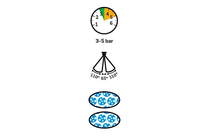 - Ravan oblik mlaza sa uglom od 110°.