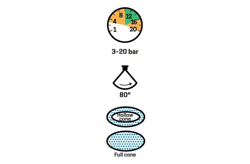ALBUZ - DISC / COREKeramička dizna šupljeg konusa UPOTREBA: Za sve tipove tretmana (herbicidi, fungicidi, insekticidi…) KARAKTERISTIKE:ALBUZ® izdržljiva konstrukcija od roze keramike omogućava upotrebu visokih pritisaka prskanja uz očuvanje performansi i preciznosti.Šuplja konusna dizna koja raspršuje fine kapljice.Kombinacije diskova (AD) i jezgara (AC) omogućavaju širok izbor primena.Preporučeni pritisak: 10 bara. TABELA PROTOKA